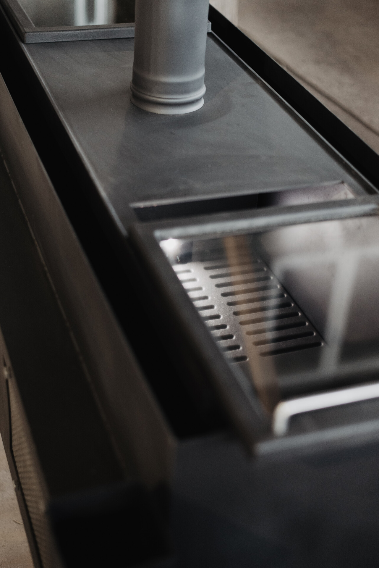 От высоких температур мангала столешница защищена огнеупорным минеритом и металлическим коробом второго контура мангала