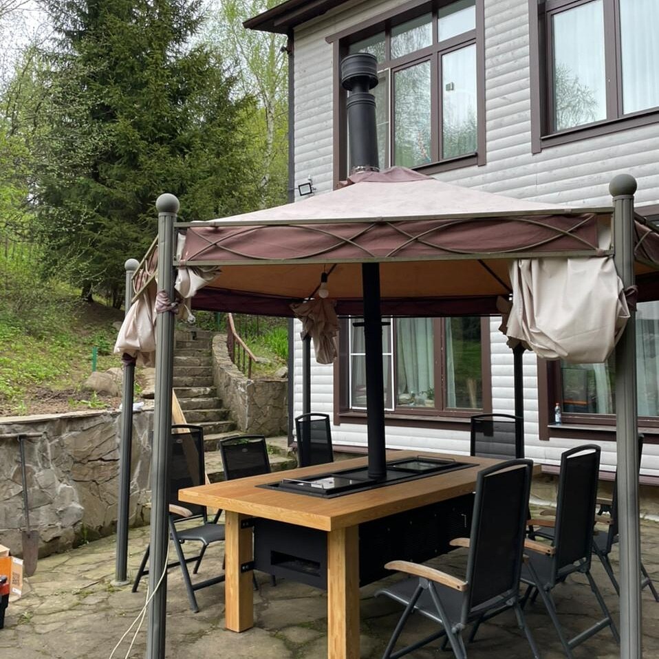 - Для личного пользования с установкой стола-гриль в беседке, на открытых или закрытых террасах, под навесом.