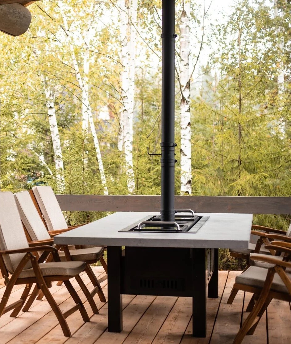 Уличный горизонтальный КАМИН - приятное тепло от жаровни обогревает нижнюю часть стола.